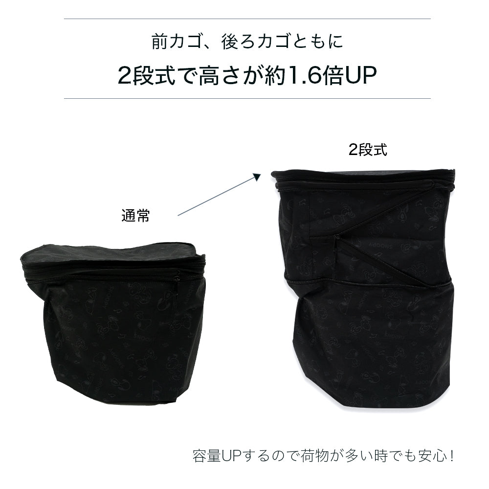 荷物の量に合わせて1.6倍まで容量をアップ!「二段式 自転車用前かごカバー ワイド スヌーピー」